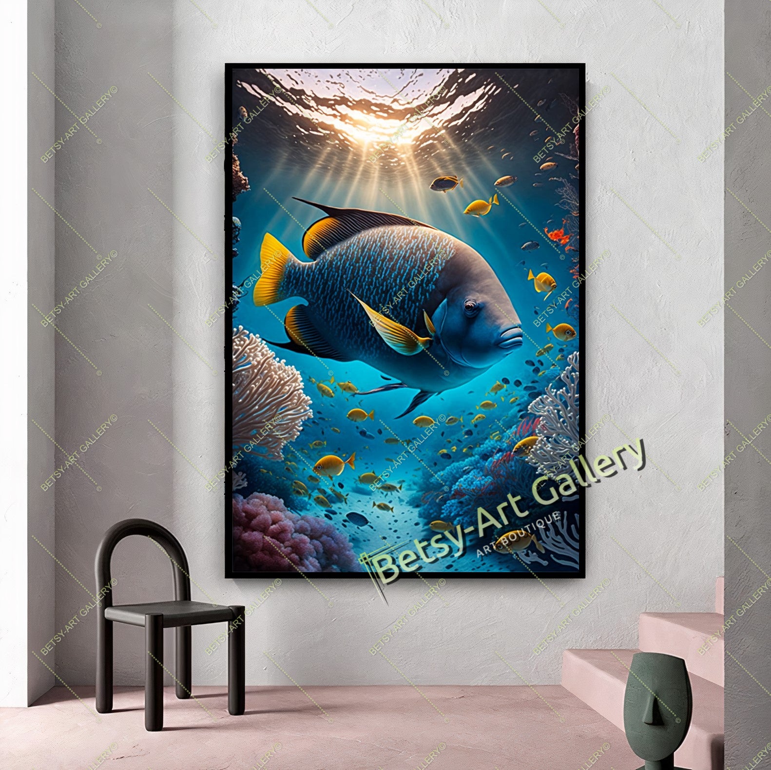 - Dive into tranquility with this Caribbean Ocean Underwater Fish Canvas Print, showcasing vibrant marine life and soothing blue tones.