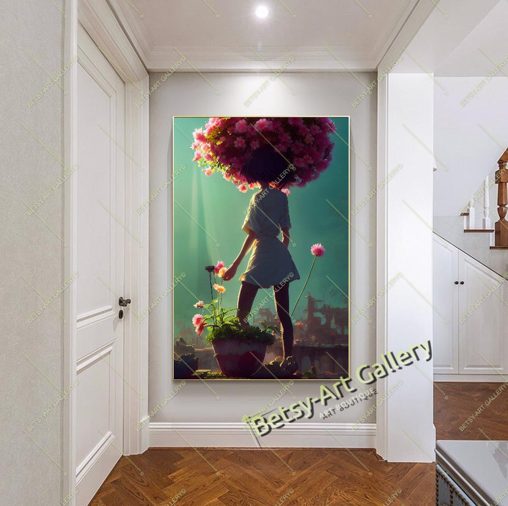 Girl with Flower – Urban Graffiti-Inspired Canvas Print