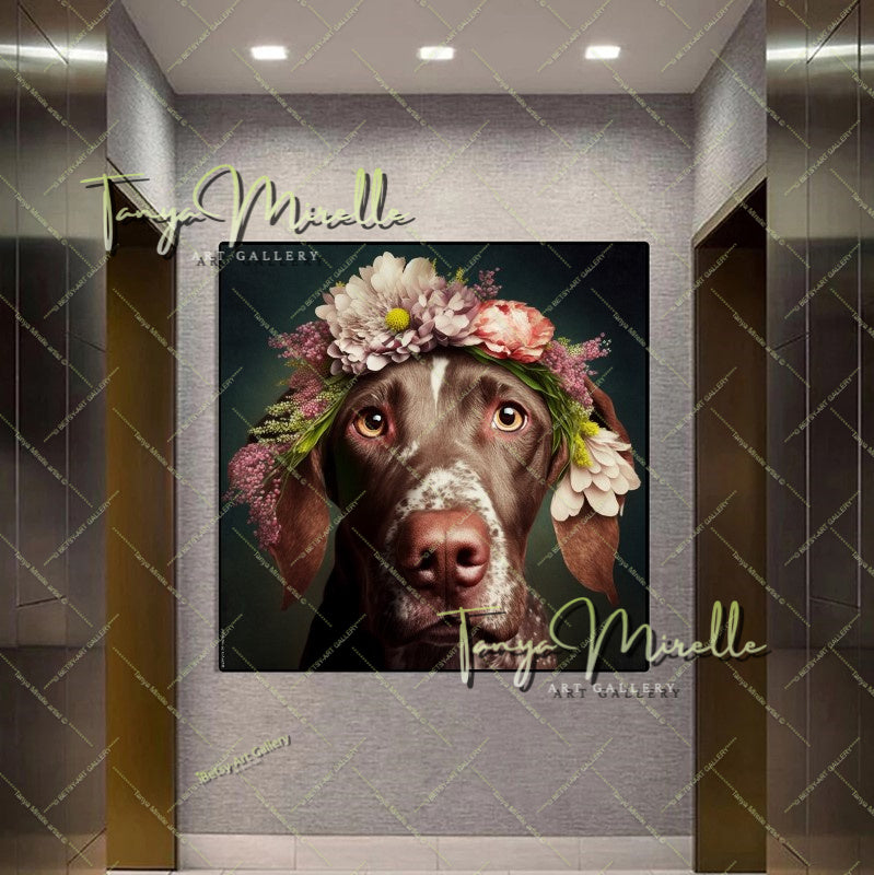 - Add a touch of fun and creativity to your space with this Floral Dog Canvas Print – Modern Animal Wall Art