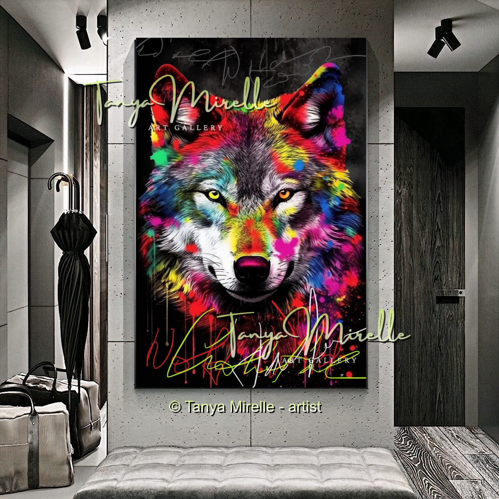 Graffiti Wolf Colorful Canvas – Abstract Animal Wall Art Print