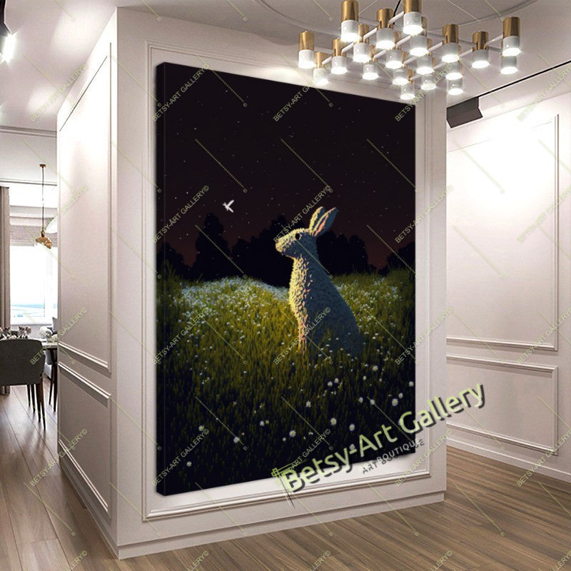 - Bring a touch of nature’s serenity into your home with this beautiful Rabbit Art Print on Canvas - Alpine Mountain Landscape Painting.