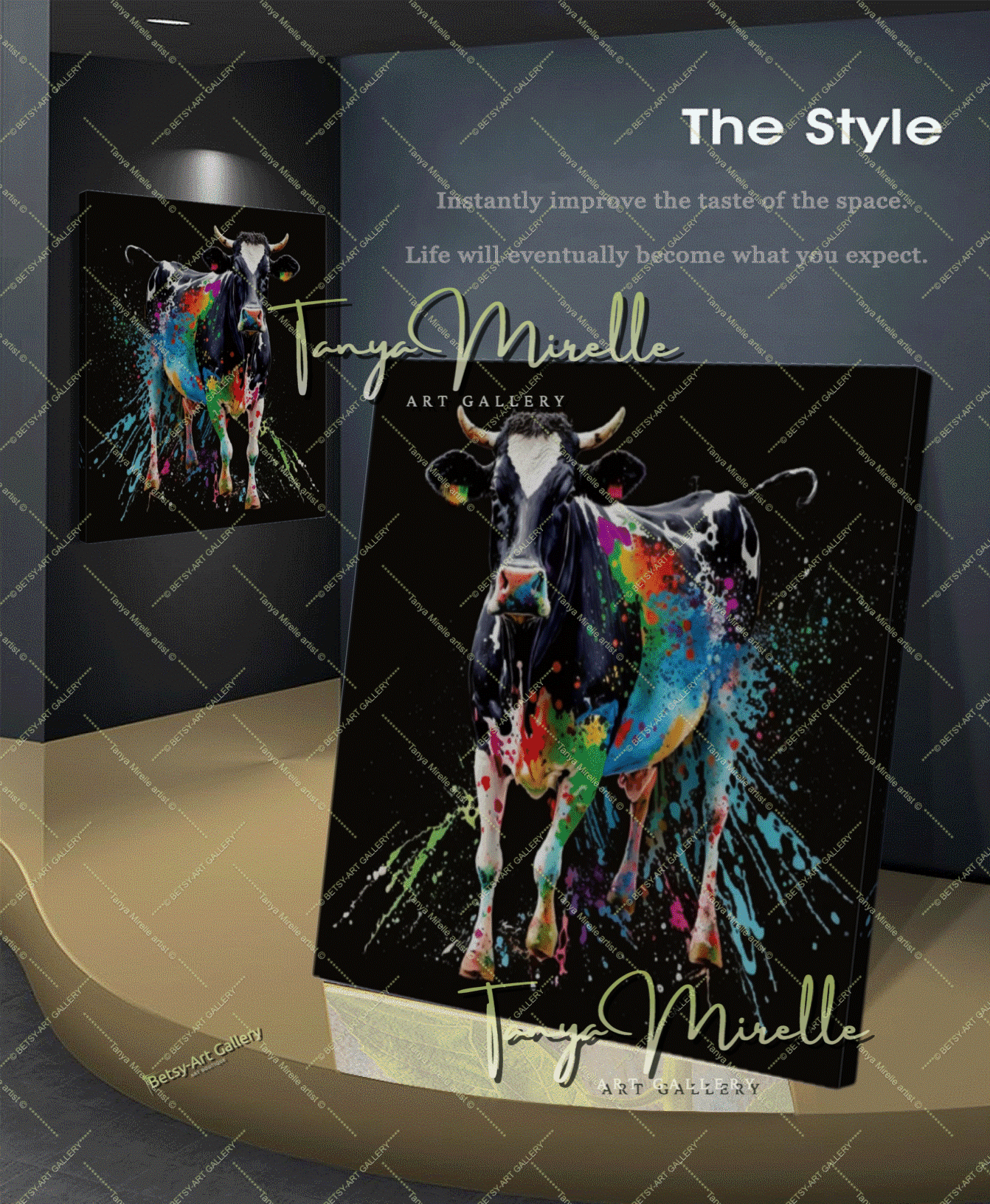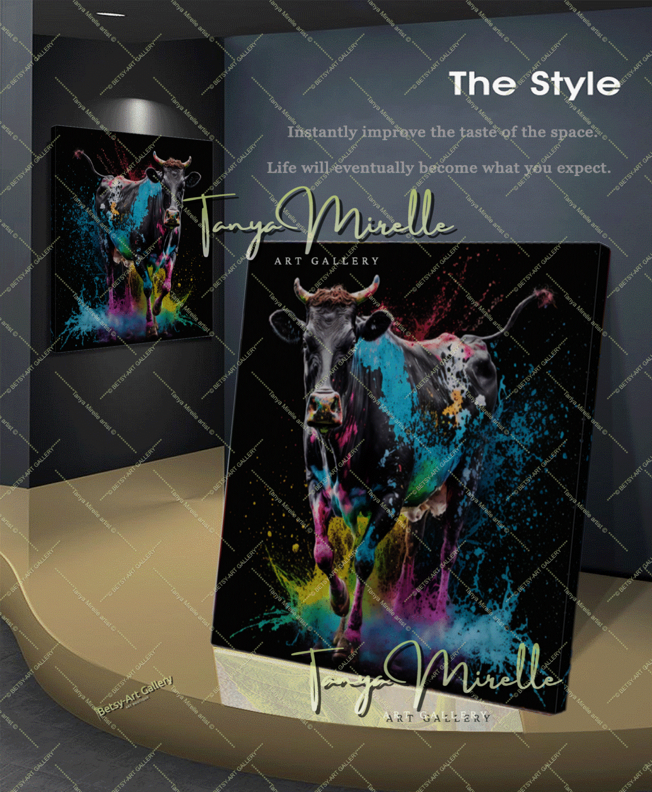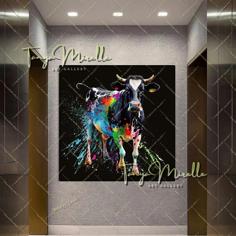 - Add a touch of fun and creativity to your space with this Vibrant Cow Canvas Print – Rustic Modern Animal Wall Art